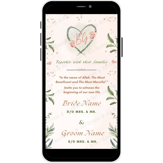 Love in Bloom Muslim Wedding PDF Invitation Card