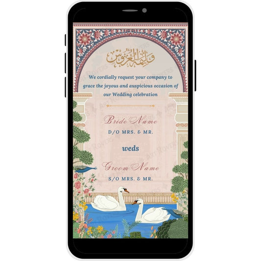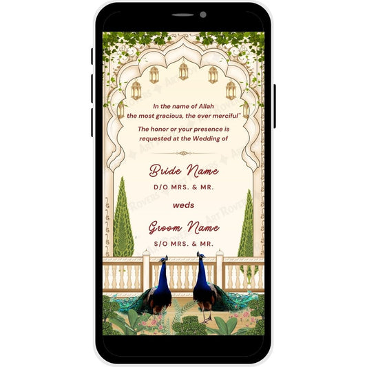 Royal Peacocks Muslim Wedding PDF Invitation Card