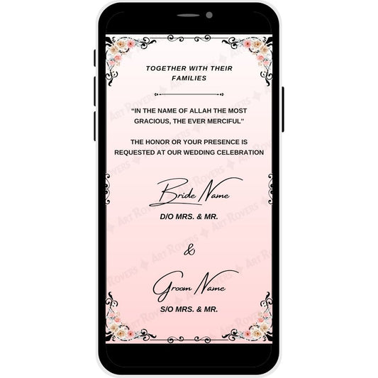 Blushing Roses Muslim Wedding PDF Invitation Card
