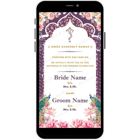 Lotus Love Hindu Wedding PDF Invitation Card