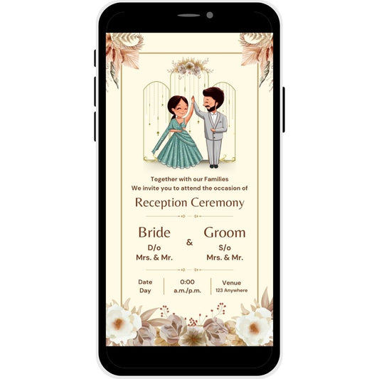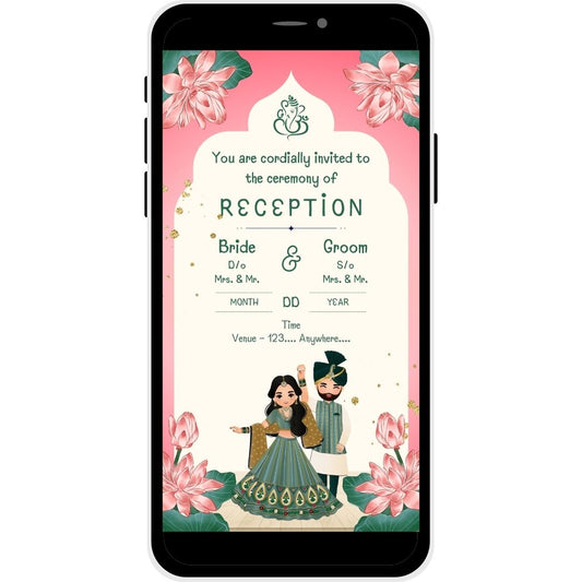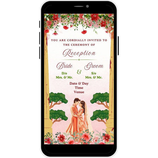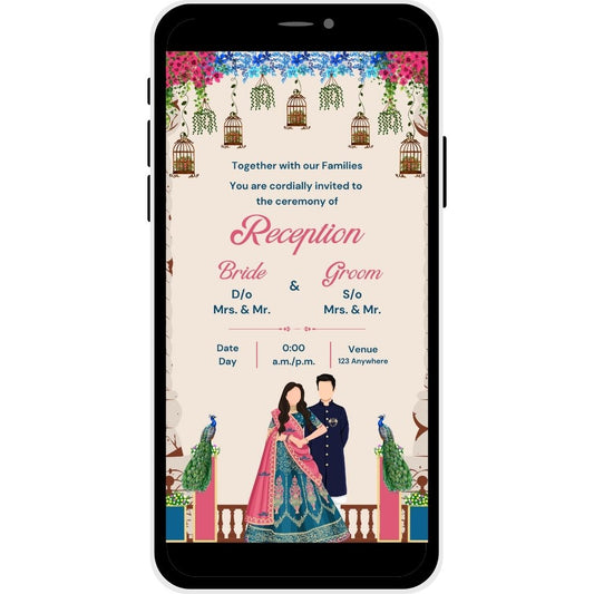 Make your wedding celebrations unforgettable with our wedding reception invitation cards. Designed to capture the grandeur of your special day, our digital invitations are perfect for sharing with friends and family.