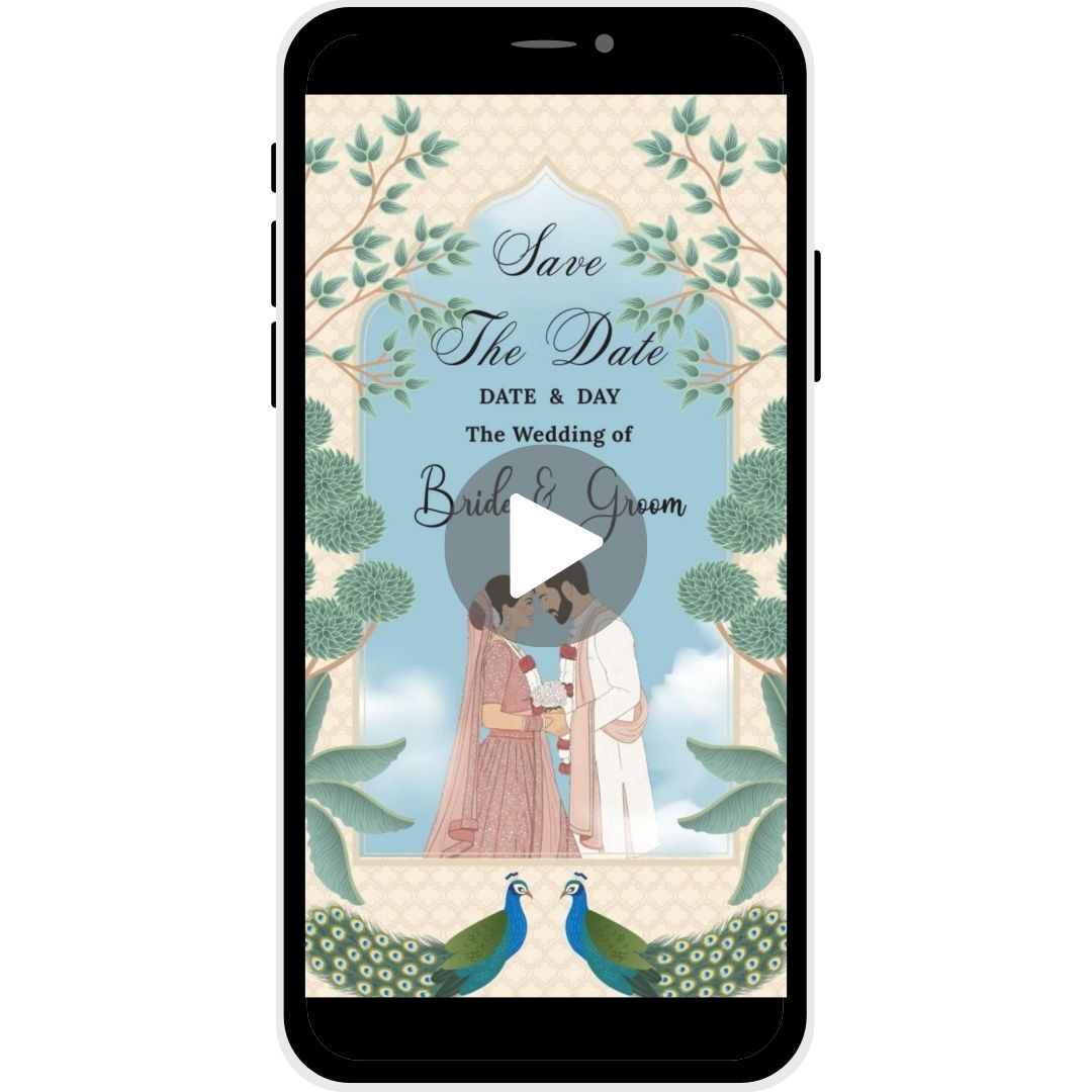 Capture the magic of your wedding day with 'Enchanted Union,' a Save the Date invitation video that radiates warmth and elegance. Adorned with lush greenery and peacock motifs, this invitation is perfect for couples looking to bring a touch of enchantment and cultural beauty to their announcement. Ideal for sharing on WhatsApp, social media, and email to invite loved ones with charm and grace.